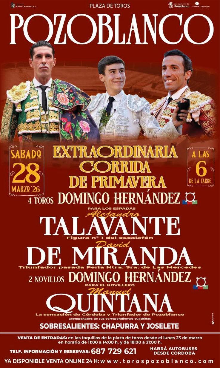 Toros de Domingo Hernández para Talavante, David de Miranda y Manuel Quintana (Novillero)