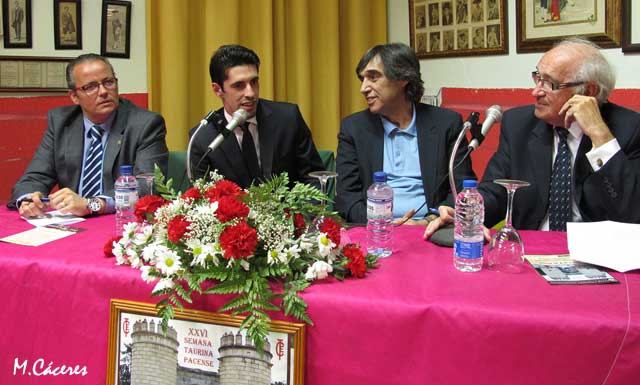 09/03/2012 Alejandro Talavante participó en la charla "El toro y el cine" que organizó el Club Taurino Extremeño de Badajoz. Junto al diestro pacense participó también el cineasta y aficionado a la tauromaquia Agustín Díaz Yanes.