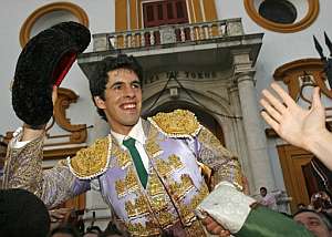 Alejandro Talavante conquista Sevilla y abre la Puerta del Príncipe, en una histórica tarde para el diestro extremeño. Al tercero de Núñez del Cuvillo, le realizó una faena en los medios que le valió una oreja. La apoteosis vino con el último toro, también del mismo hierro y justo de fuerzas, al que le cuajó una bella faena, muy templada, en la que sobresalieron varios naturales. 23-04-07